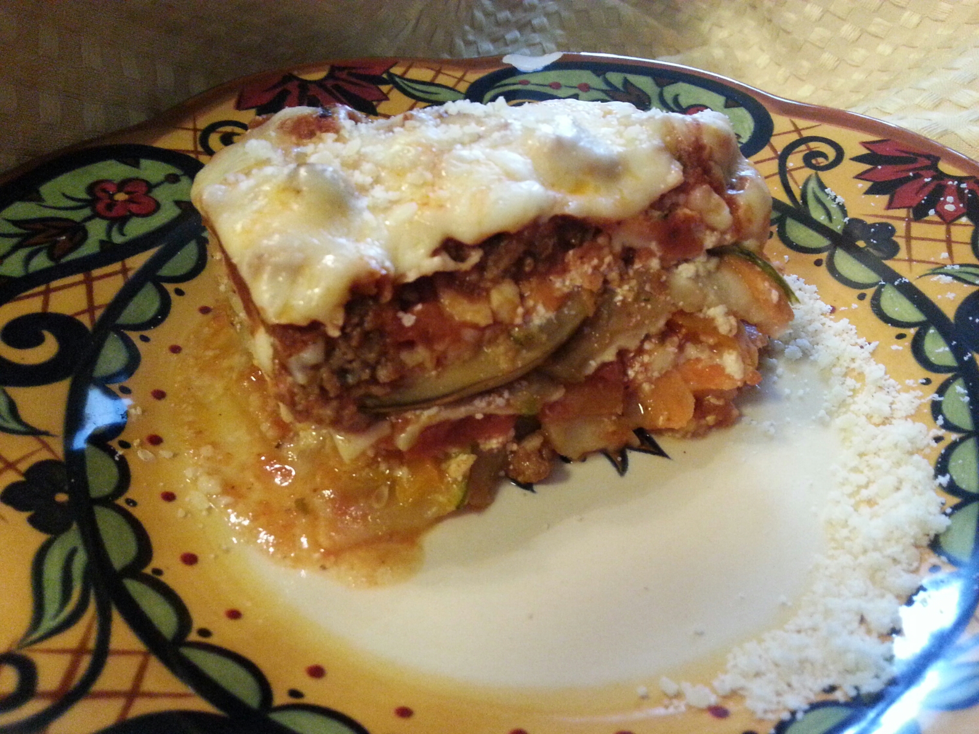 You can add or take away any thing you want, or substitute as well. Next time I make this I think I’ll try ground turkey (just don’t tell my husband!) You can also take out the noodles completely and just used the eggplant. To top off the greatness of the recipe, it freezes wonderfully. I often make at least two pans, one for dinner and one for the freezer. Also great for a gift to a new mom, someone recovering from surgery, or just a good friend!