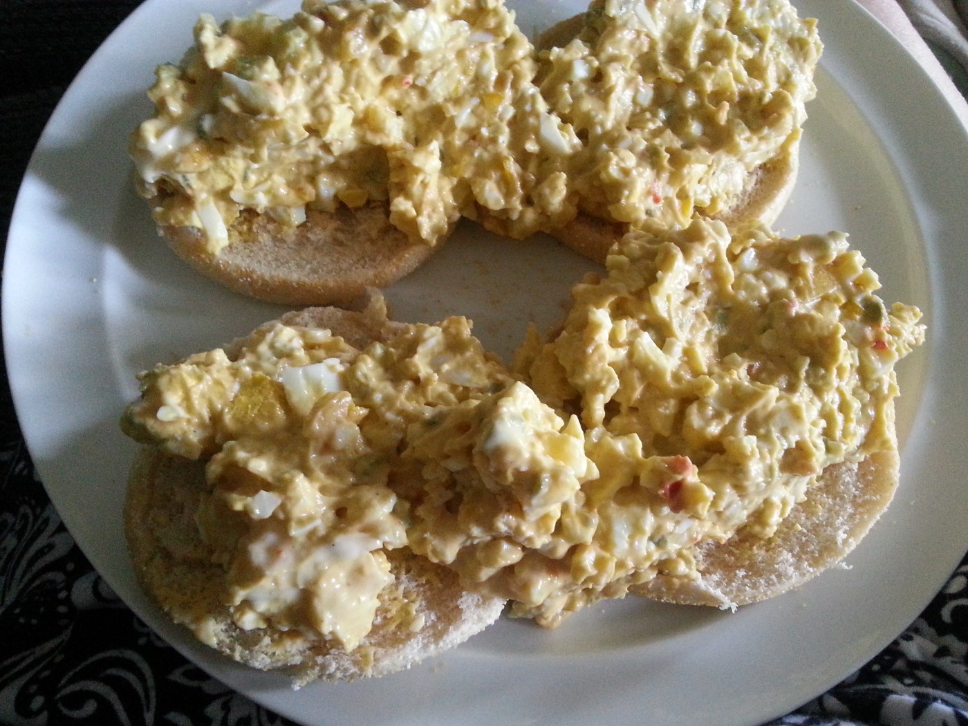 So here is a little recipe for my Egg Salad. Being as we have chickens that give us LOTS of eggs, I try to make atleast one egg-based meal a week. I’m a big fan of this one!