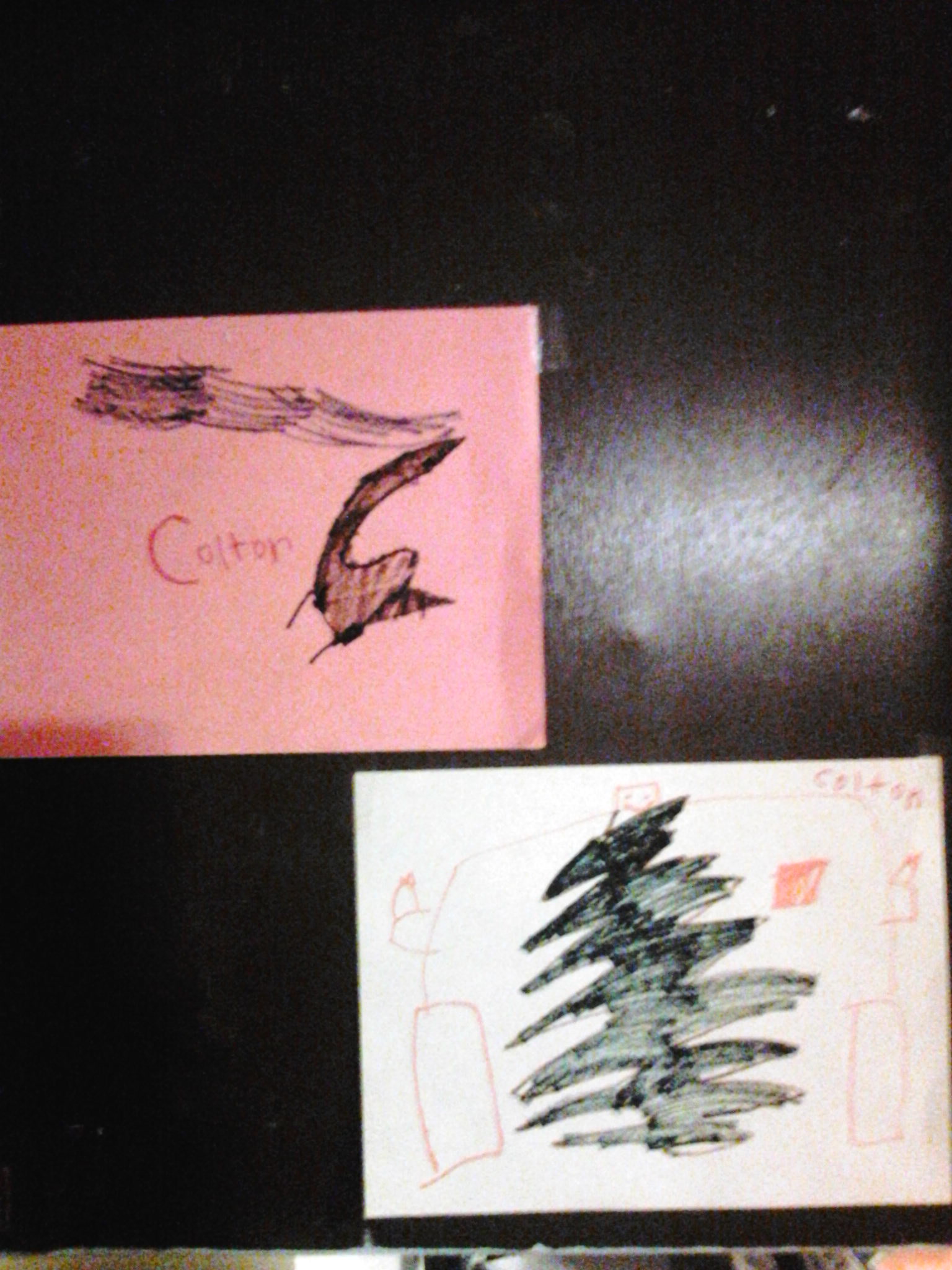 And lastly, on the inside doors are some drawings my nephew made for me a few years ago, before he was in Kindergarten. I plan to save them for his graduation 🙂