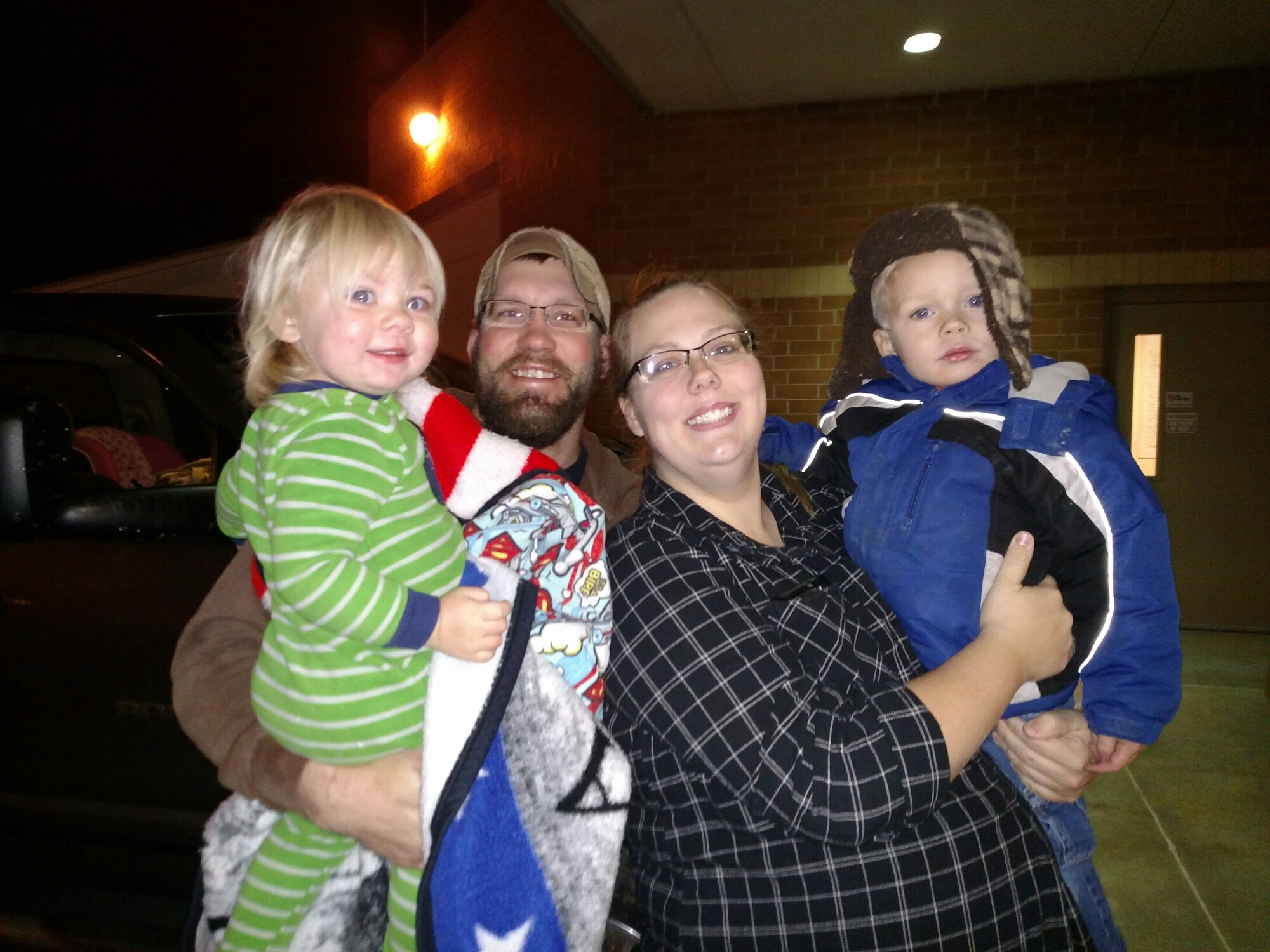 I had our bags pretty much packed, but yet there was still so much to gather. Plus, I had to find clothes for myself… Always a challenge for a very pregnant lady. At first, we thought we might bring the big kids with us for a while until it got a little later in the morning… like say six… But by the time we were ready to load the car it was clear that this baby was coming sooner rather than later and we better call the family who was going to watch our bigs. They were going to their daycare family, whom they LOVE and we’re totally ok with this news. Conveniently for us, and a bummer for them, their youngest had woke up in the middle of the night with a terrible ear ache. So when we called to tell them we were bringing our kids over, they were already at the emergency room and just met us there!! One less stop for us, and Ross didn’t have to leave me at all. It’s a night I’m sure they won’t be forgetting soon!! I had our friend snap this quick shot as a “last picture as a family of four!”