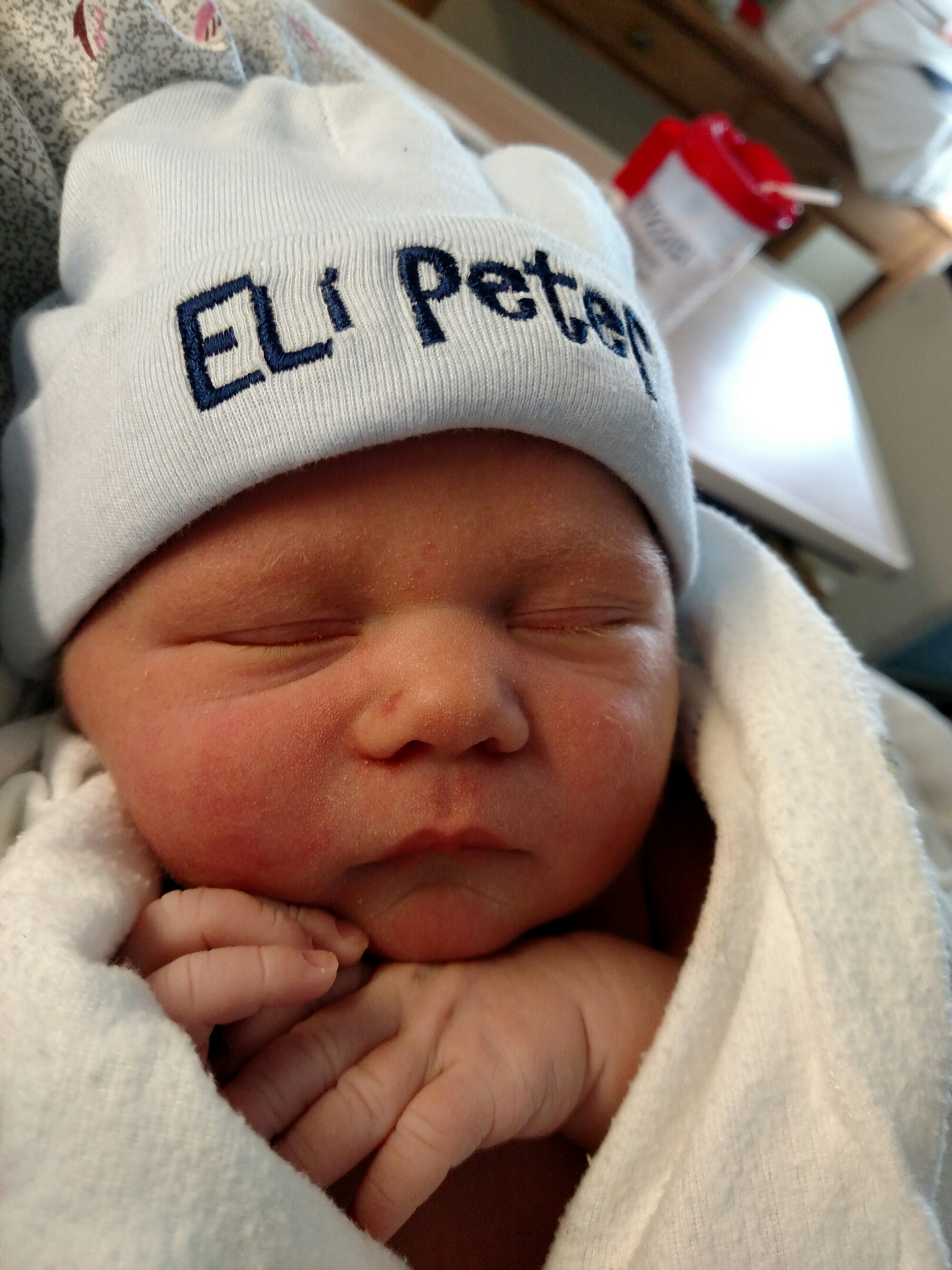 He entered the world on December 5th. Eli came two weeks before his due date, a week before our scheduled c-section. That means I went into labor… And let me tell you folks, labor is not fun!