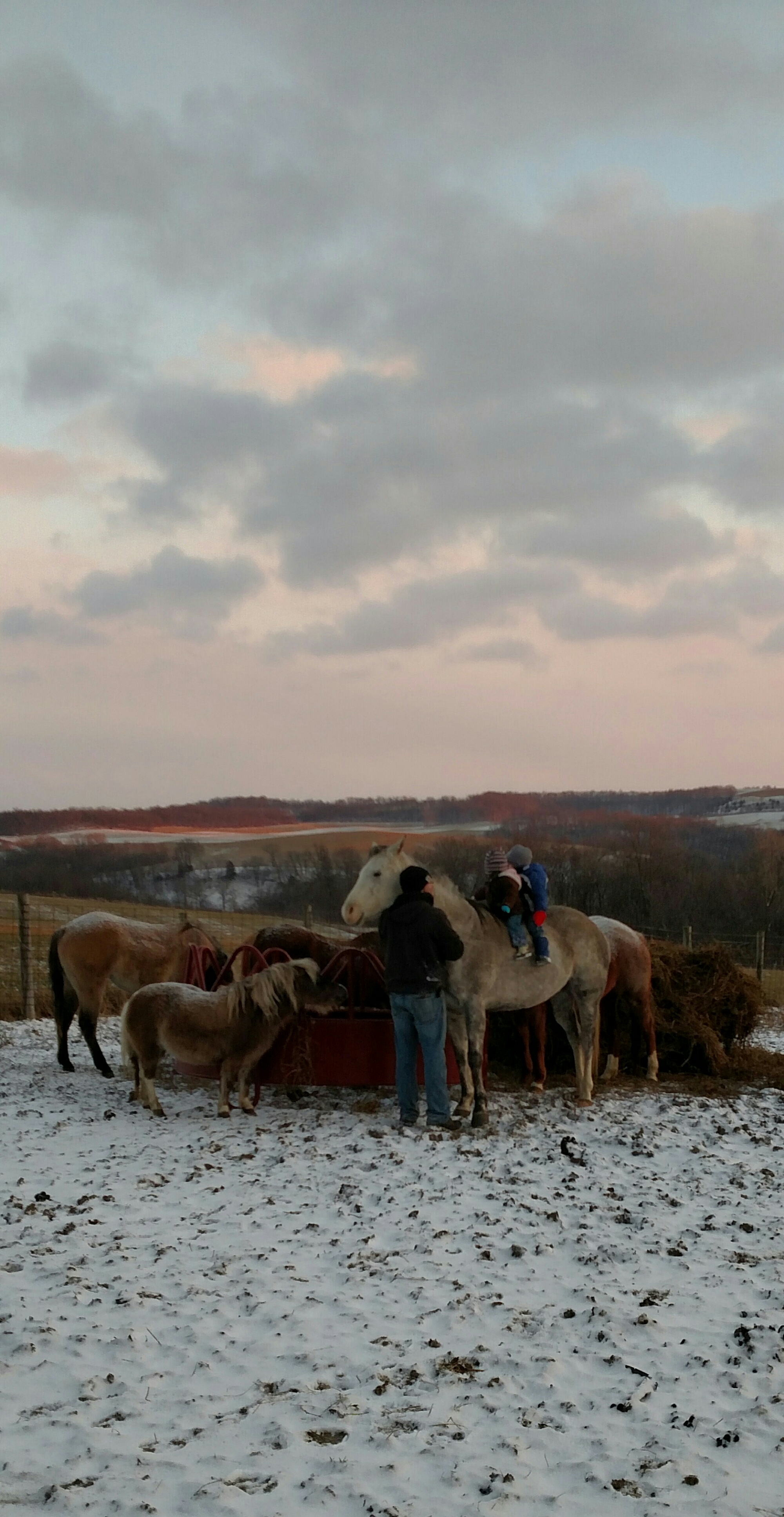 But before I get into all that, we got a little snow today, but the sun in note out and do are the children and animals! So here are a couple pictures from around the farm today!