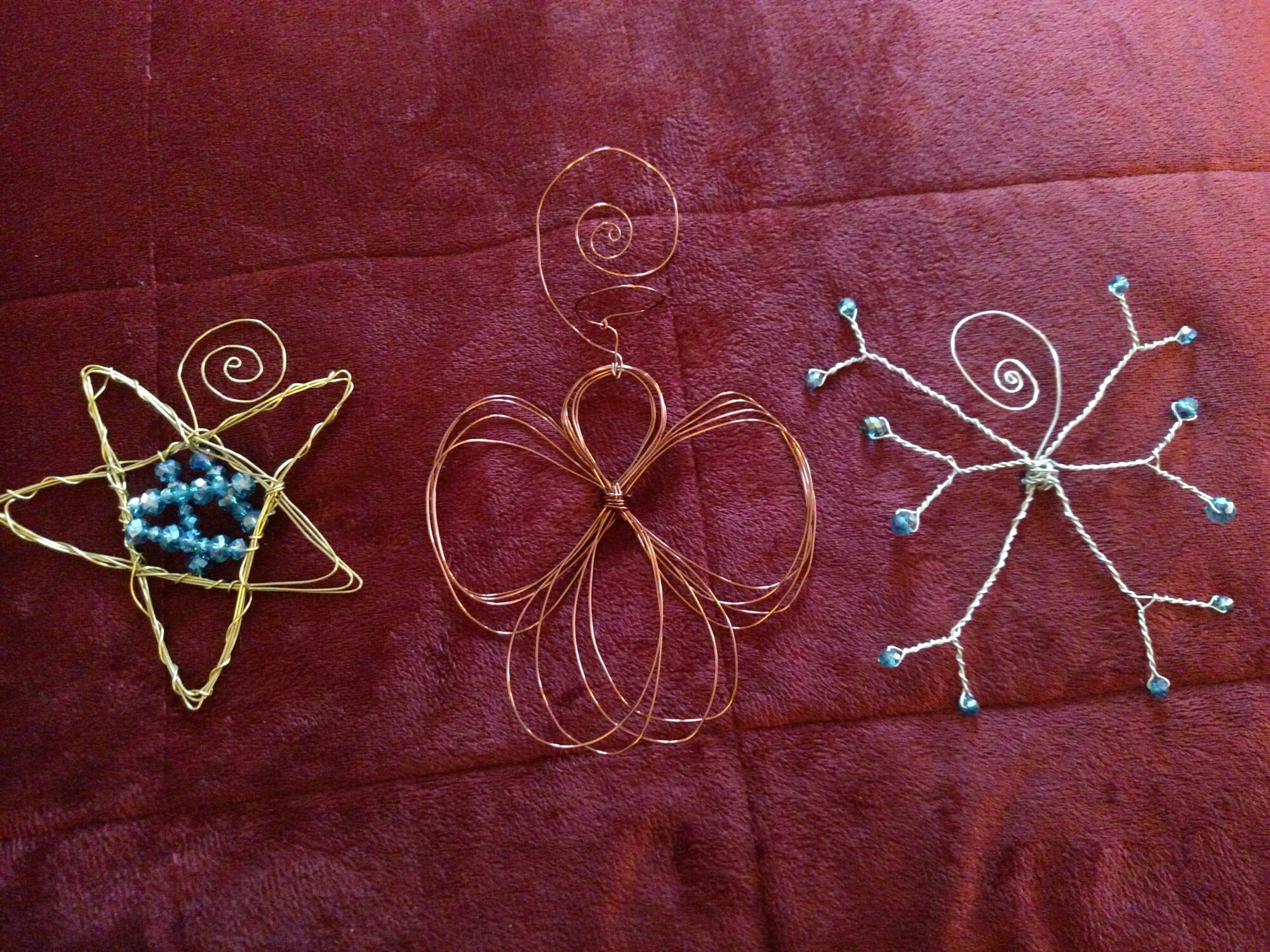 Now, when I went looking for ornaments, they were a little on the pricey side. When added on top of all the other gifts and presents it was just getting to be too much. I needed to look for other options. After searching Pinterest and Etsy I found some wire designs that I thought I could handle. They are simple craft wire, that I just shaped freehand and with the help of a pliers. For the star and snowflake I added a few beads. I hope that my kids will grow to love this tradition and hopefully like these ornaments made by their Momma. I think this homemade ornaments thing is something I’d also like to continue. Now with better planning there are so many options out there to try!