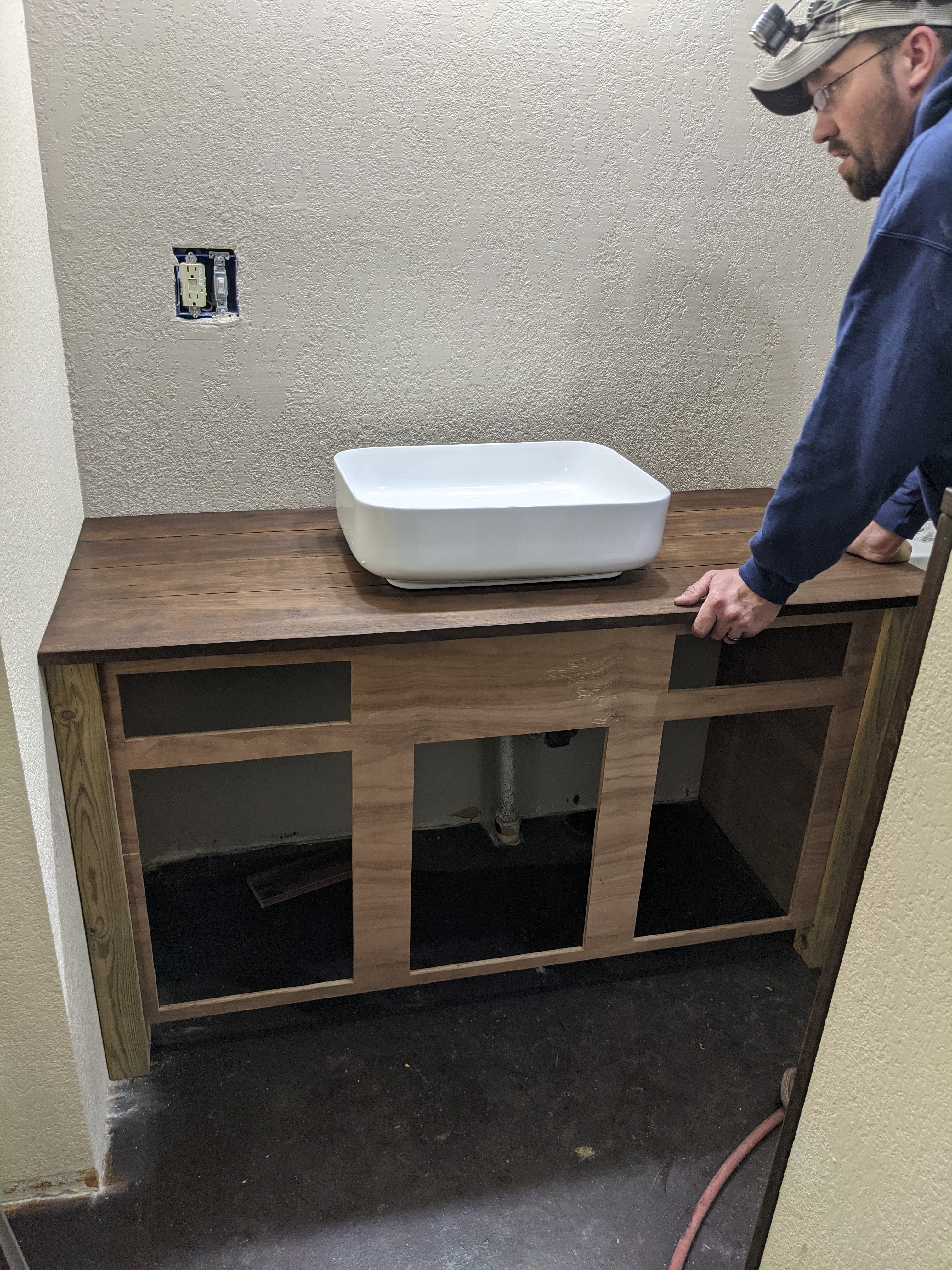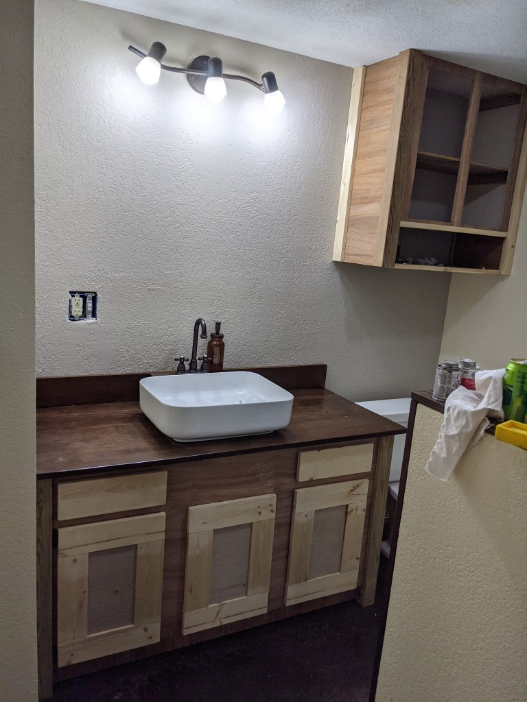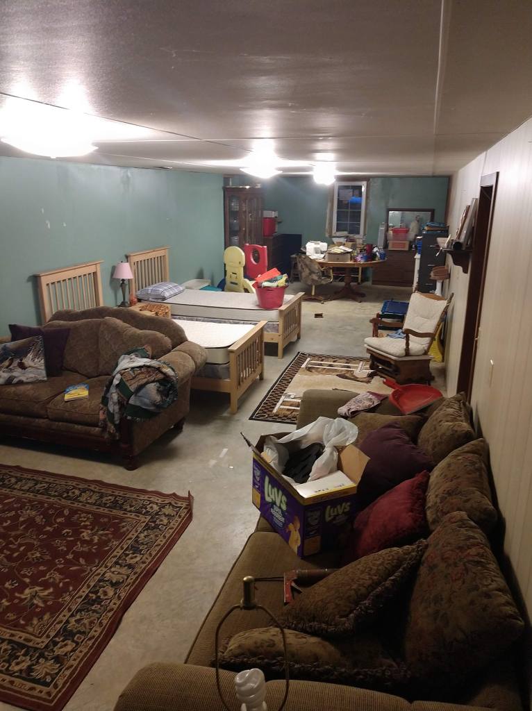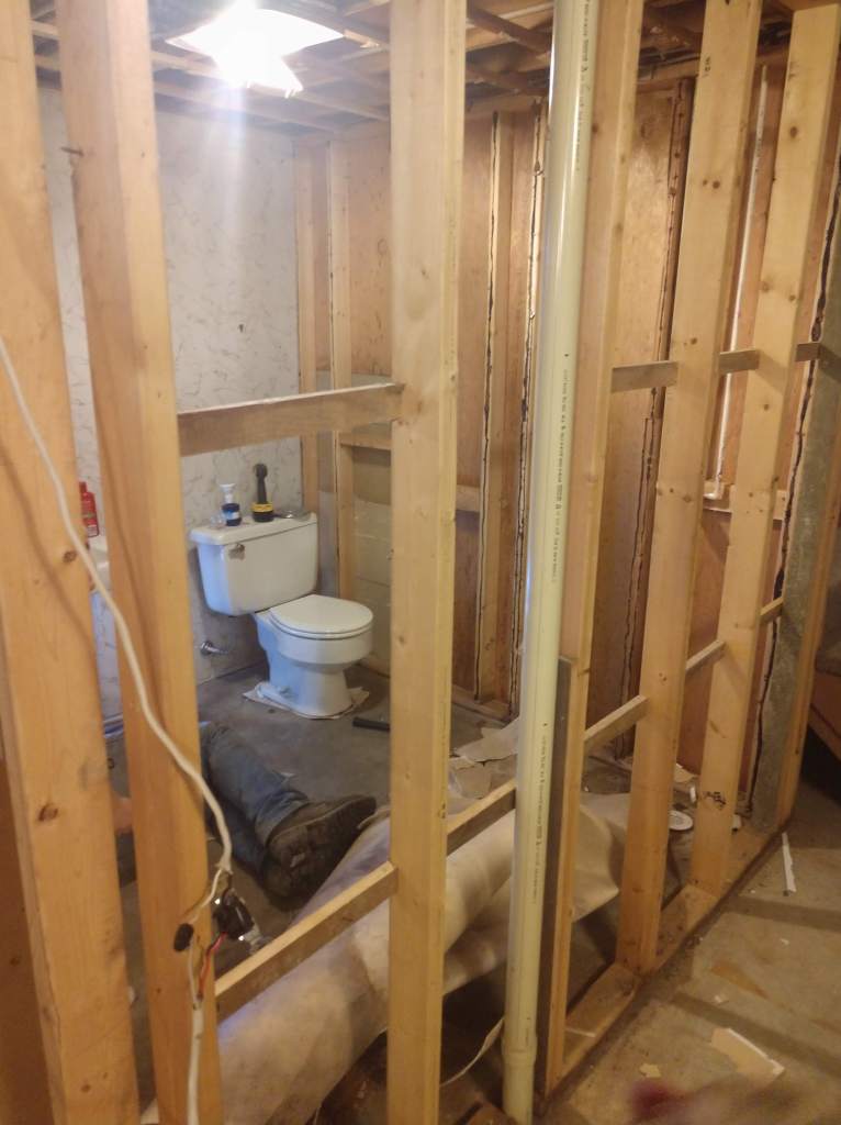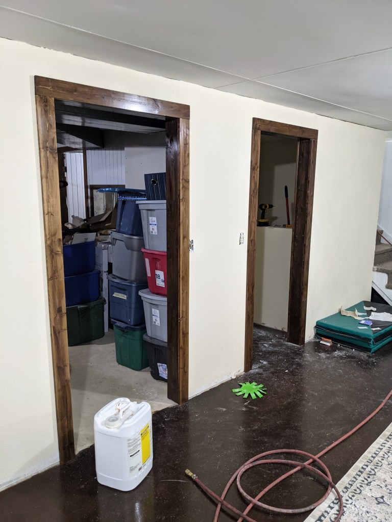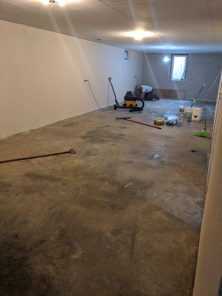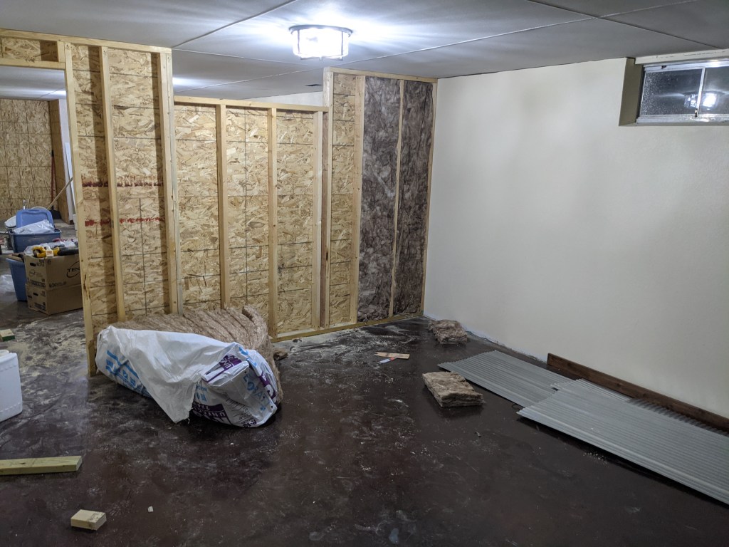 The basement had cement floors, wood panels on one side that had mold on it from water in the basement. There was drywall on a few walls but it needed to be remudded. There was also a small, dingy bathroom that was never used and was the definition of ugly. I had a vision of a living area, office nook, full bathroom and master bedroom. Ross made my vision come to life.