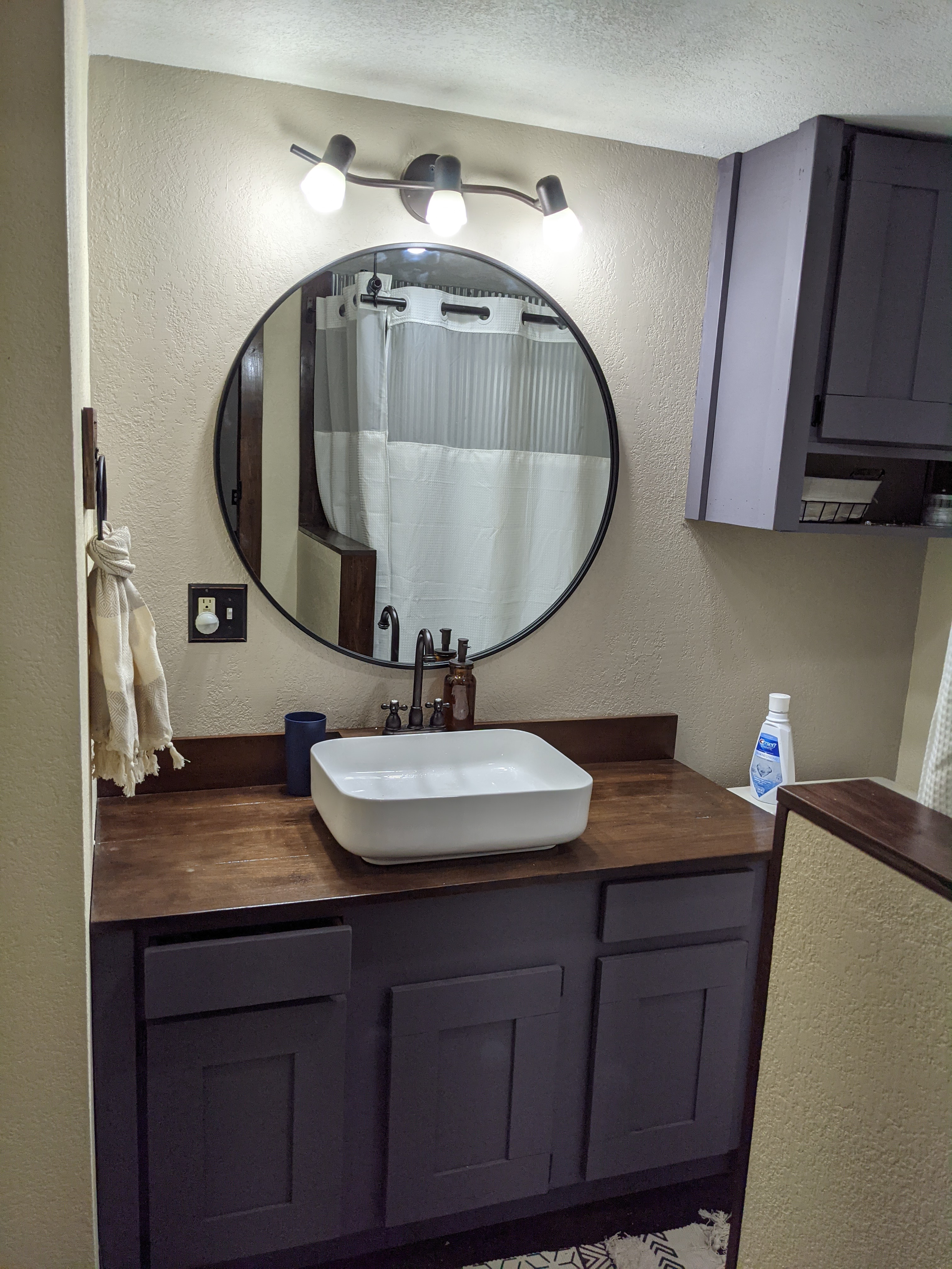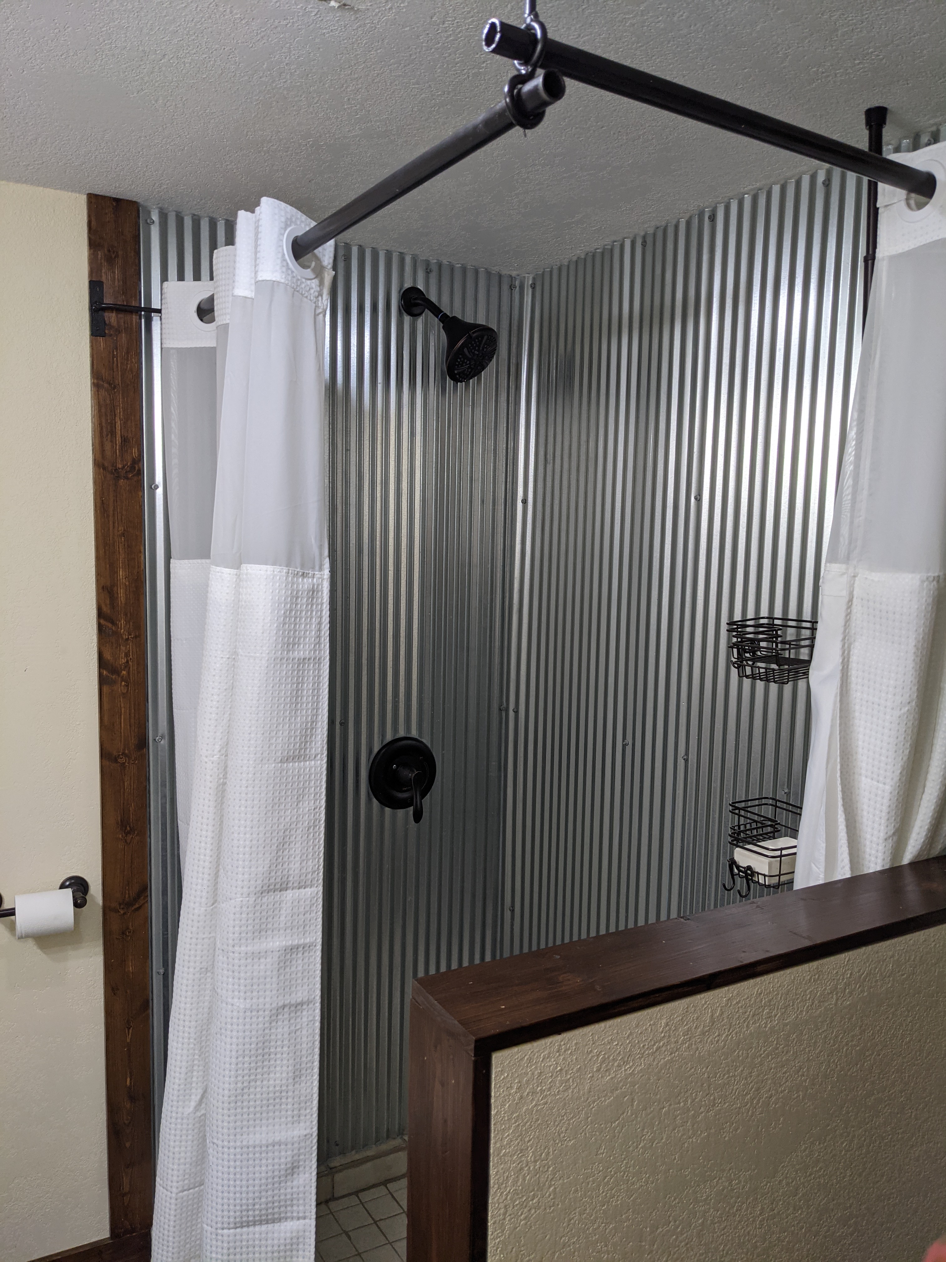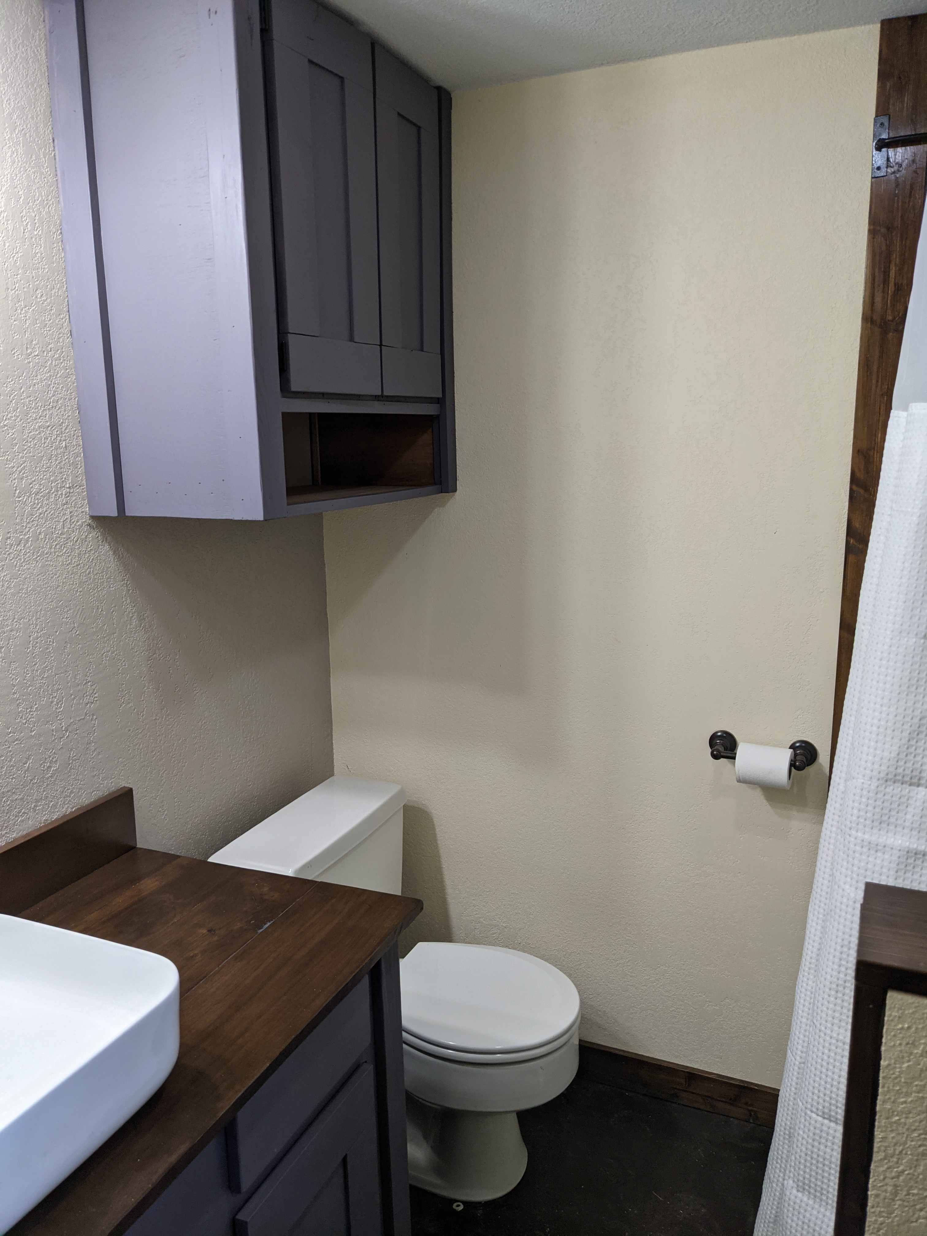 Ross also rebuilt the bathroom, adding a large, tin covered shower, moved the door and made a beautiful vanity. I love the tranquility and rustic feel.