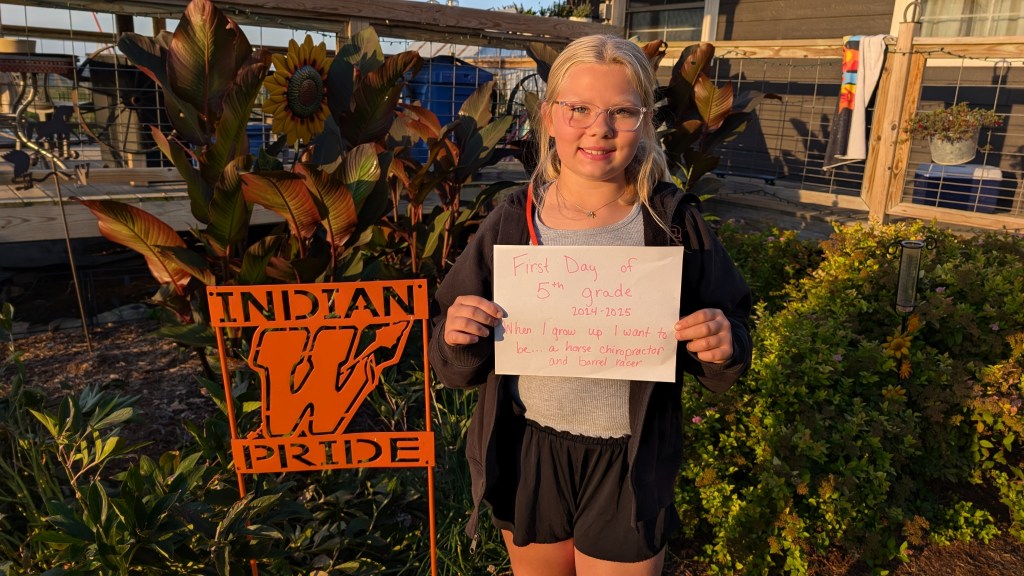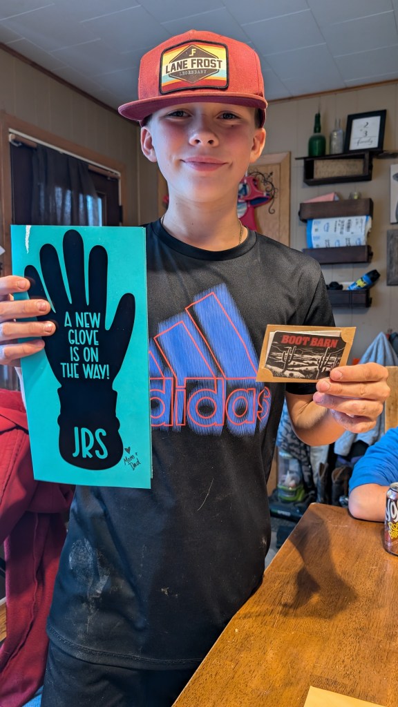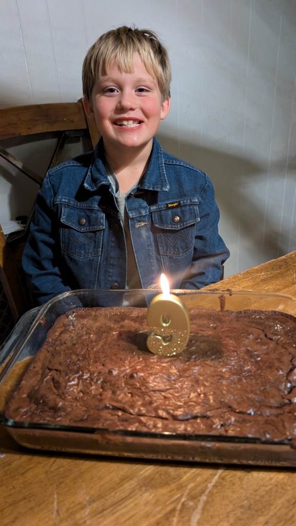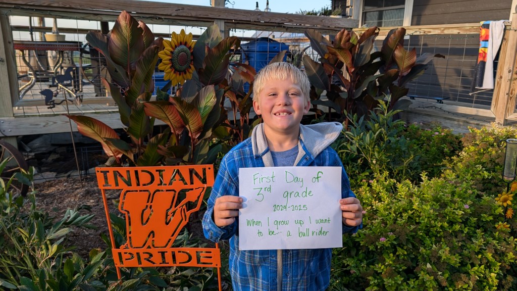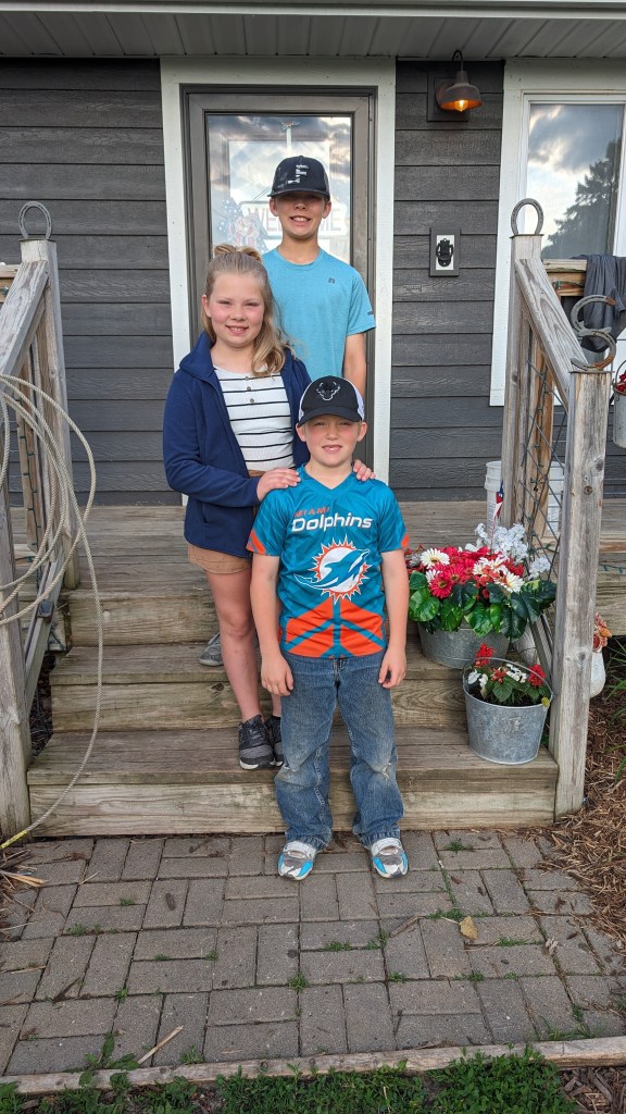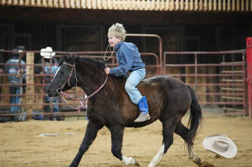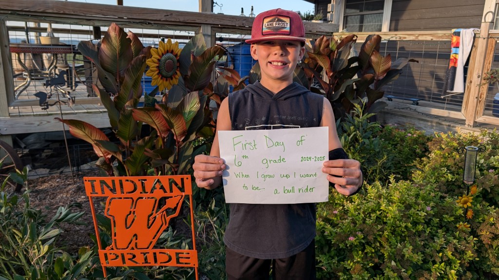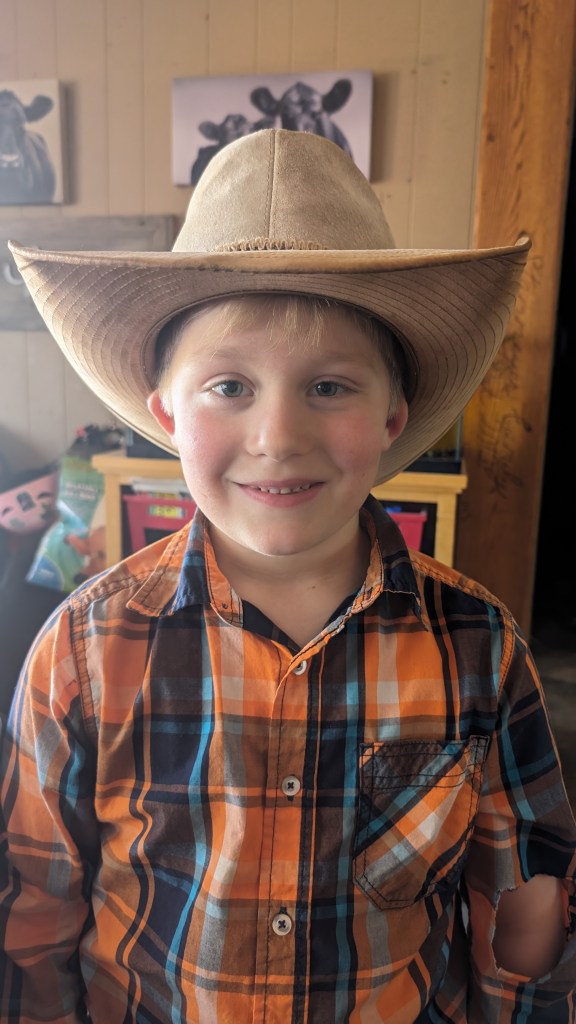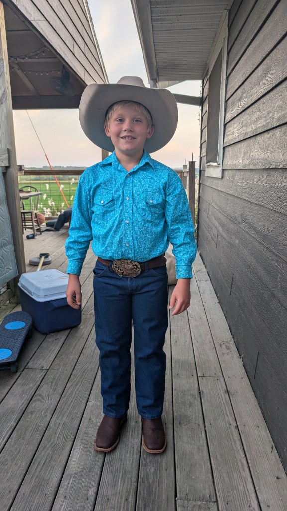And last but certainly not least, little baby Eli as I affectionately call him. Eli is a very unique person and he lights up our lives while giving us lots of grey hairs. Eli continues to excel in school, when he wants to anyway. He enjoys the company of lots of individuals, always able to find someone to spend time with. Eli loves hot wheels cars, farm toys, jumping on the trampoline, and riding his pony, Oven, all over! Yes, his pony is named Oven. When we got the pony and were bringing him home, Eli declared, “You put the Pi (one of our horses) in the Pan (another horse). Then you put the pan in the Oven! His name should be OVEN!” And that was that. This young man celebrated his First Communion in the spring, and we are so proud of his delight in choosing his faith. Eli continues to grow his culinary skills, becoming a master of the frozen pizza and chicken nuggets with bbq sauce. Eli, like the rest of the family, loves the rodeo. Eli is not only a great bull rider he also has become a skilled goat tier. His greatest achievement in rodeo is becoming known as “The Dancing Cowboy” for his amazing footwork skills to Cotton Eyed Joe. That boy can move! If you ever need a good chuckle, call for the latest Eli story- he’s always got something up his sleeve.