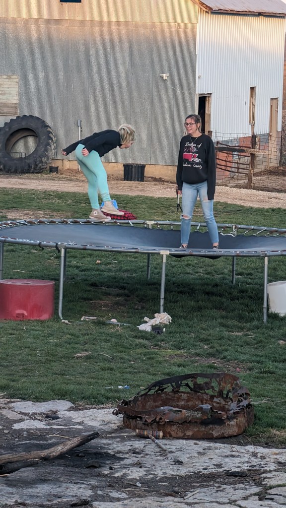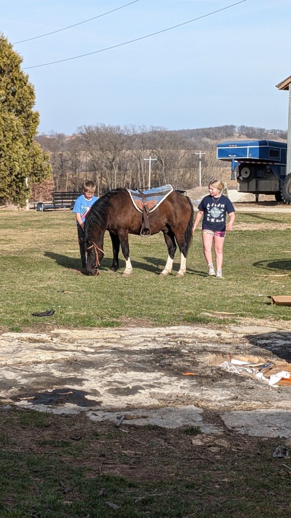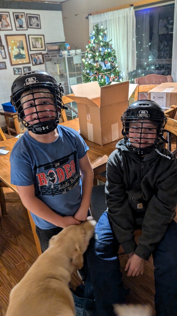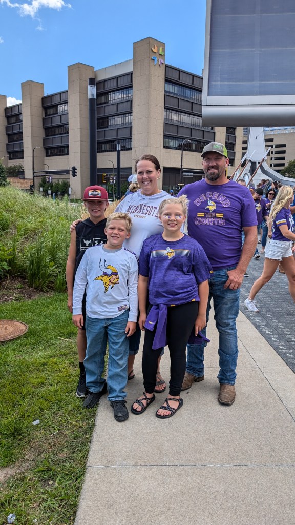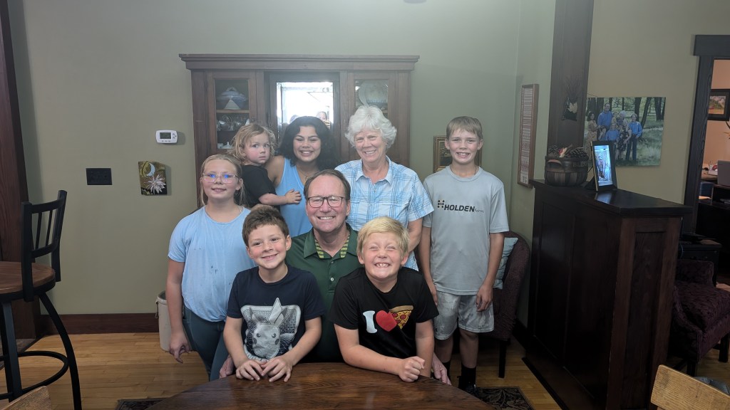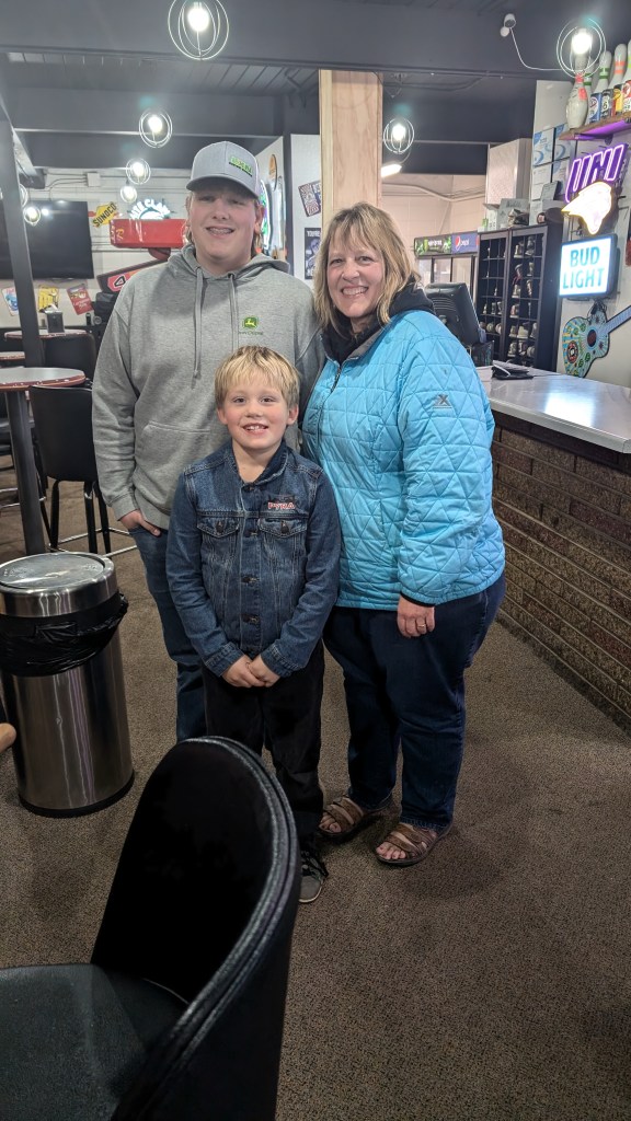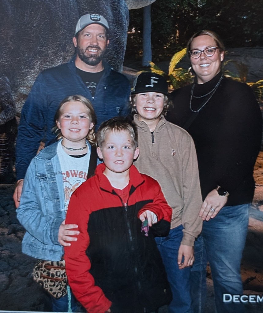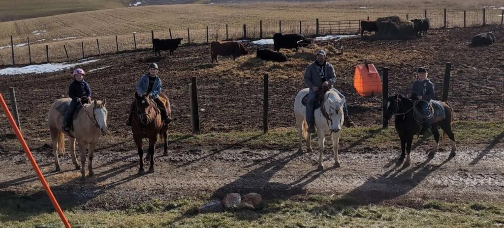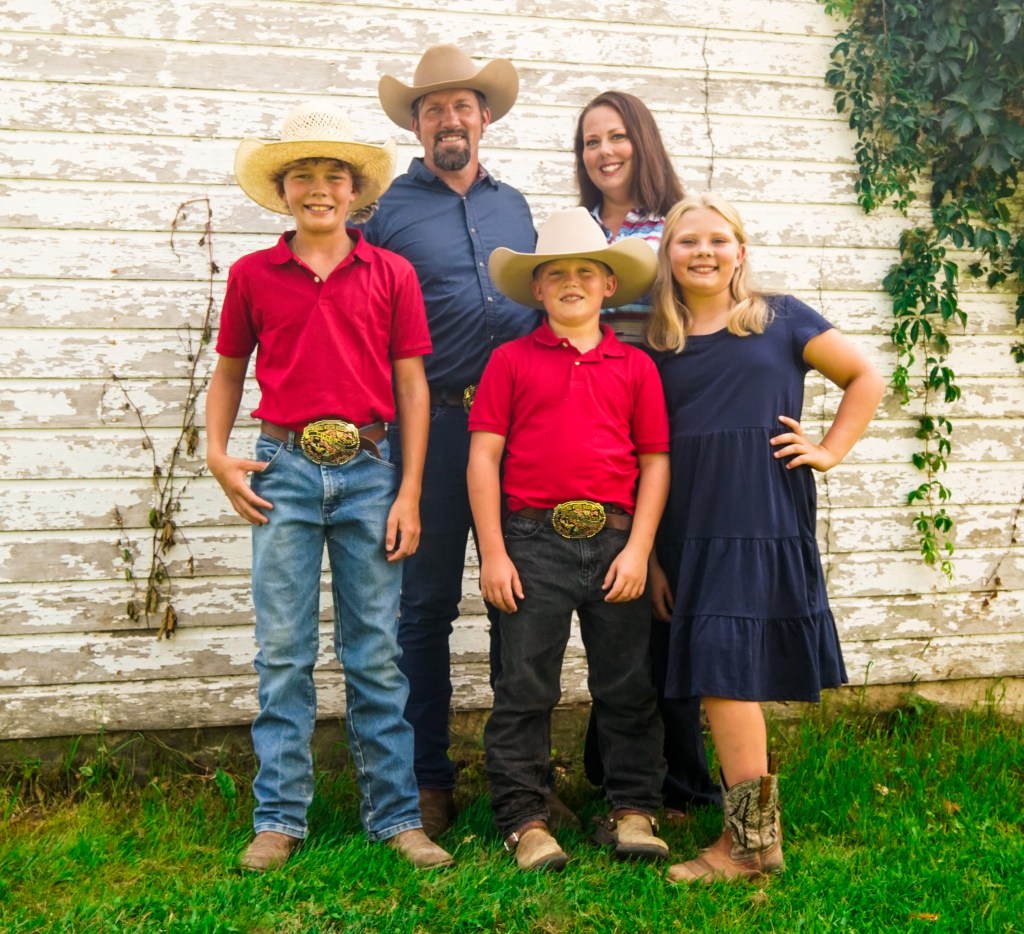The rest of the family is doing wonderfully. Just over a year ago, Ross took a new job with a logging company. He spends most of his time buying trees from land owners that his company then cuts and sells to mills. Occasionally he helps cut trees too. He enjoys the variety of work and the challenges it brings. He’s very good at his job and has been wonderfully successful. It also helps greatly that he is appreciated by his boss and his skills are supported. Ross is constantly on the move, if not with work, with the farm and family. He loves his cows and fields. He REALLY enjoys working on maintaining all the vehicles and equipment on the farm… or at least he’s good at keeping everything going. He has a very specific set of vocabulary to use when working on such projects. Last April, while participating in a Rodeo, Ross has a bad accident. He had an intense interaction with a steel post and his shoulder. The post won. After a few nights in the hospital, a major surgery and several trips to Iowa City, he is healing really well. His doctors said they have never seen anyone heal so nicely. A statement which went immediately to Ross’s head. Haha. Ross still continues to beg to go back to riding, but his very mean wife refuses to allow this to happen. Please feel free to inform Ross on your own that you feel his bronc riding days should be over.